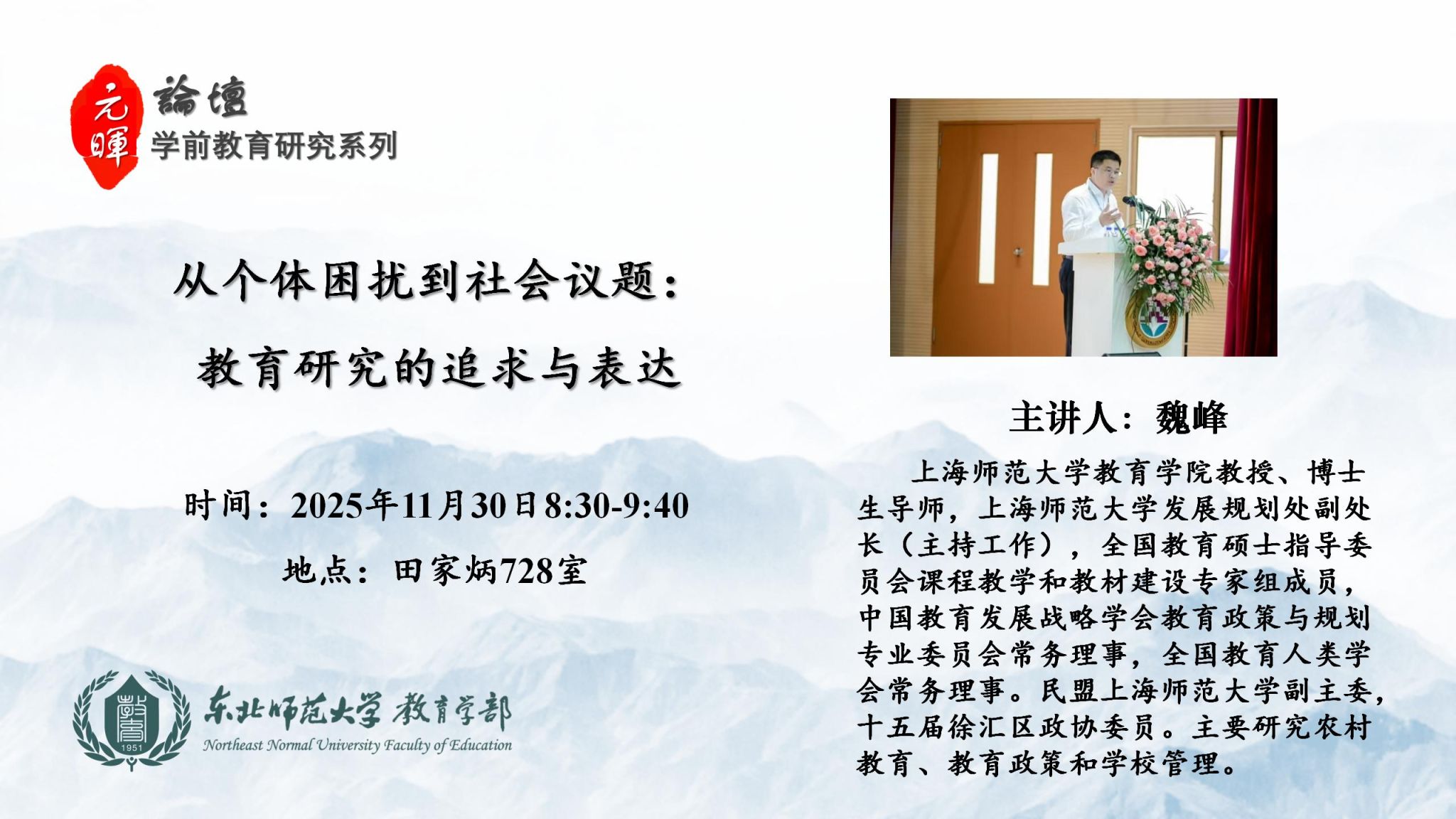 【元晖论坛——学前教育研究系列】魏峰:从个体困扰到社会议题——教育研究的追求与表达