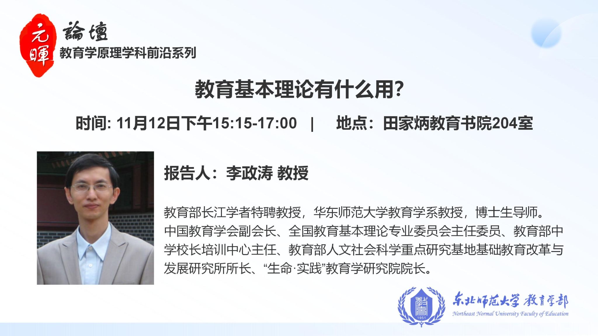 【元晖论坛——教育学原理学科前沿系列】李政涛:教育基本理论有什么用?