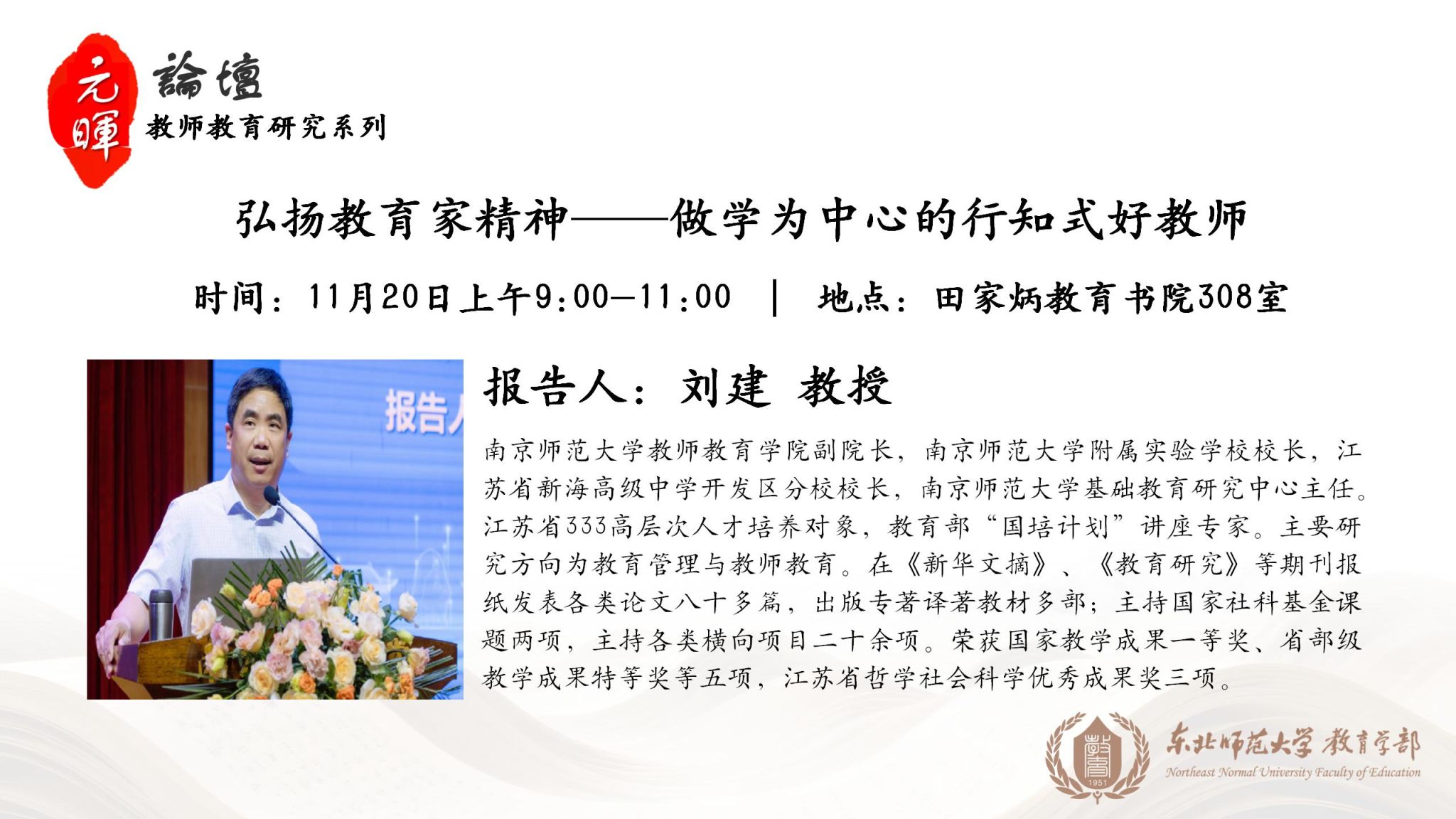 【元晖论坛——教师教育研究系列】刘建:弘扬教育家精神——做学为中心的行知式好教师