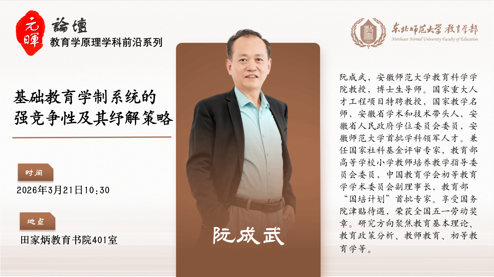 【元晖论坛——教育学原理学科前沿系列】阮成武:基础教育学制系统的强竞争性及其纾解策略