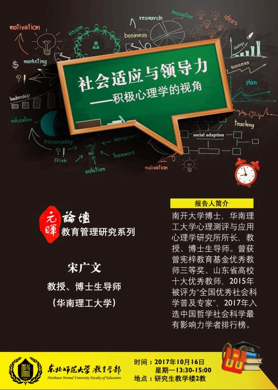 【元晖论坛-教育管理研究系列】宋广文:社会适应与领导力——积极心理学的视角