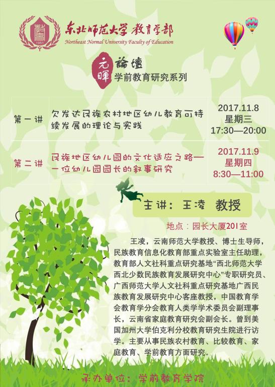 【元晖论坛—学前教育研究系列】王凌:欠发达民族农村地区幼儿教育可持续发展的理论与实践