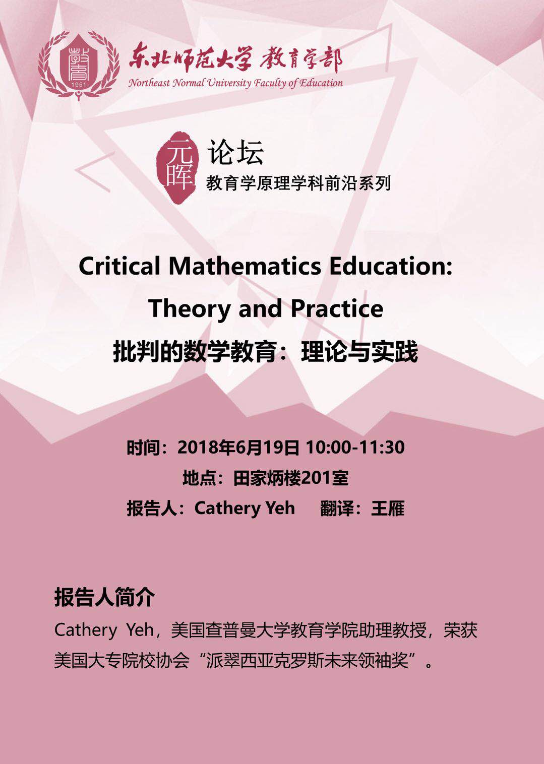 【元晖论坛-教育学原理学科前沿系列】Cathery Yeh:Critical Mathematics Education: Theory and Practice (批判的数学教育:理论与实践)