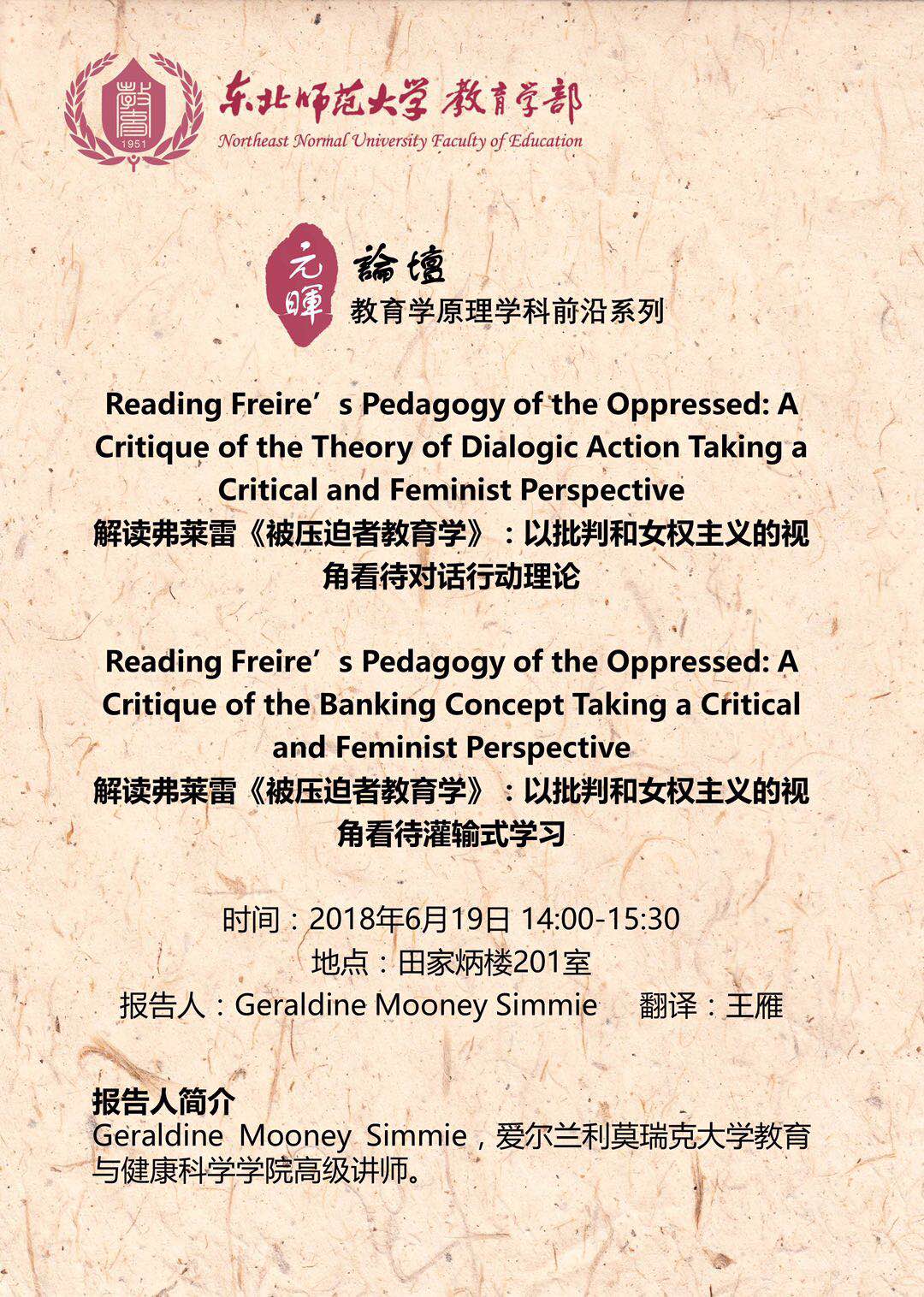 【元晖论坛-教育学原理学科前沿系列】Geraldine Mooney Simmie:Reading Freire’s Pedagogy of the Oppressed(解读弗莱雷《被压迫者教育学》)