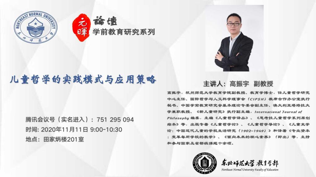 【元晖论坛——学前教育研究系列】高振宇:儿童哲学的实践模式与应用策略