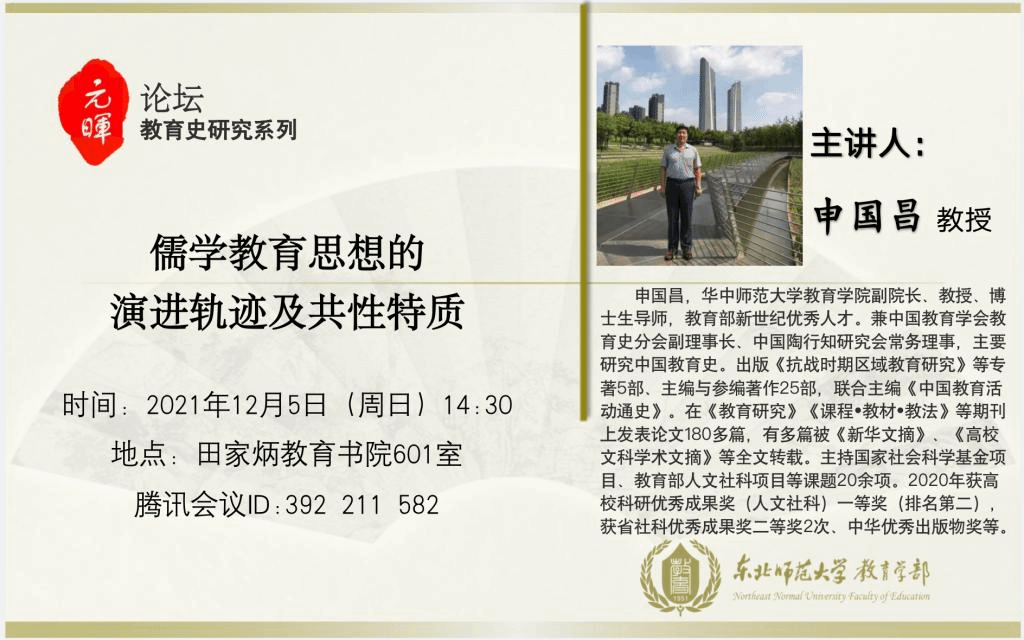 【元晖论坛——教育史研究系列】申国昌:儒学教育思想的演进轨迹及共性特质
