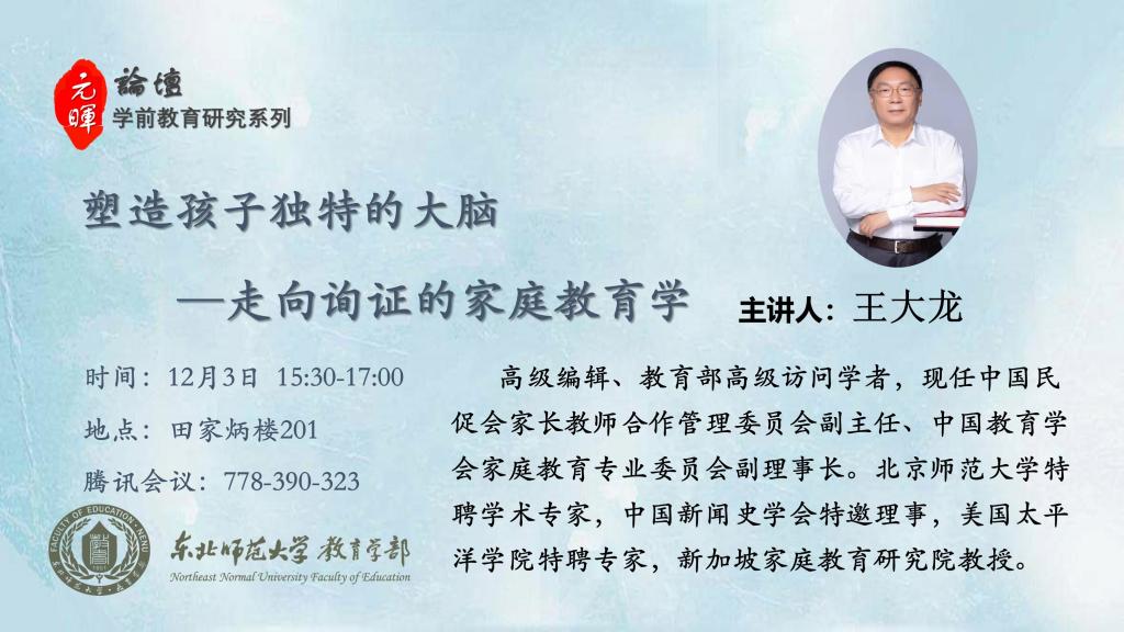 【元晖论坛——学前教育研究系列】王大龙:塑造孩子独特的大脑——走向询证的家庭教育学