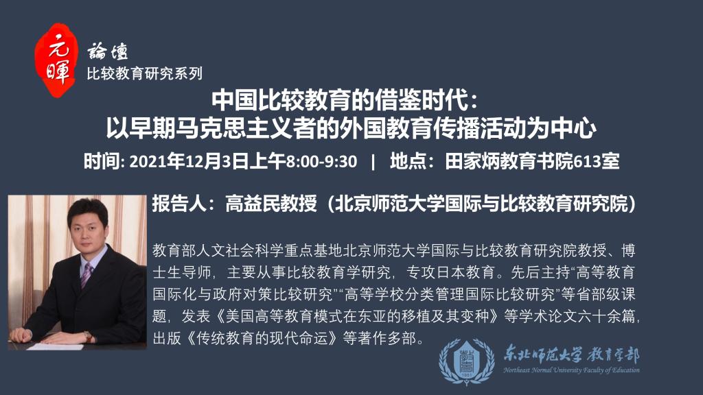 【元晖论坛——比较教育研究系列】高益民:中国比较教育的借鉴时代:以早期马克思主义者的外国教育传播活动为中心
