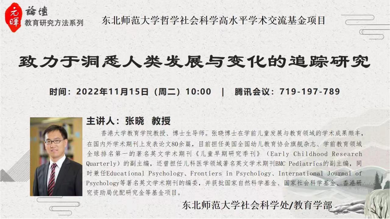 【元晖论坛——教育研究方法系列】张晓:致力于洞悉人类发展与变化的追踪研究