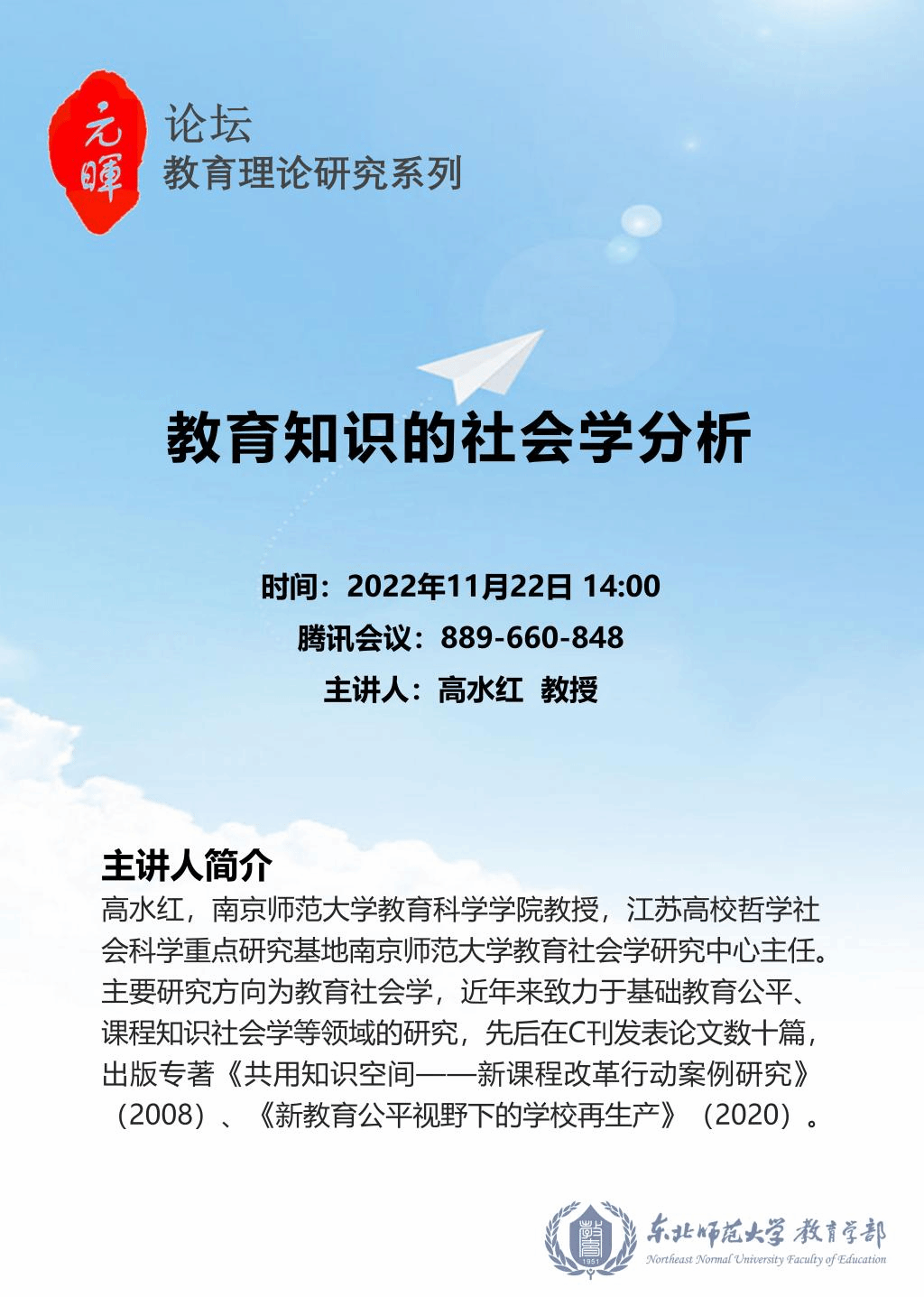 【元晖论坛——教育理论研究系列】高水红:教育知识的社会学分析