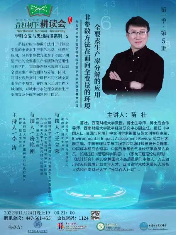 【学科交叉与思想前沿系列】苗壮:非参数方法在面向全变量的环境全要素生产率分解的应用