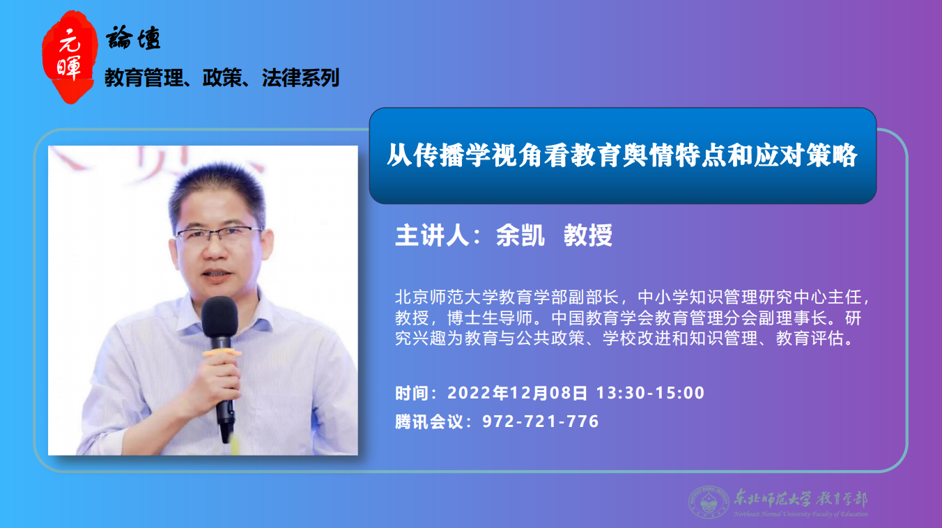 【元晖论坛——教育管理、政策、法律系列】余凯:从传播学视角看教育舆情特点和应对策略