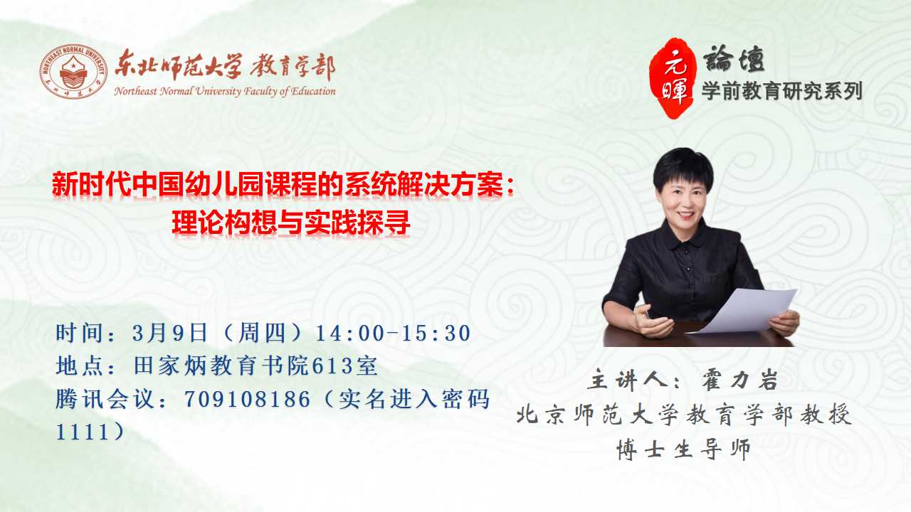 【元晖论坛——学前教育研究系列】霍力岩:新时代中国幼儿园课程的系统解决方案:理论构想与实践探寻