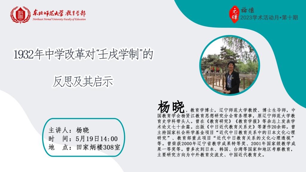 【元晖论坛——2023学术活动月第十期】杨晓:1932年中学改革对“壬戌学制”的反思及其启示