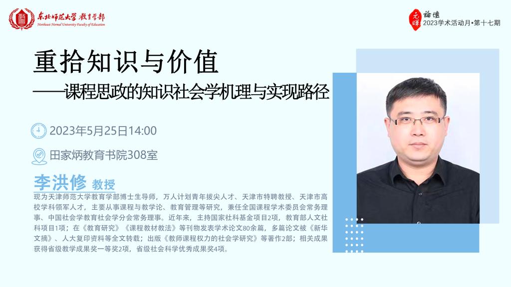 【元晖论坛——2023学术活动月第十五期】李洪修:重拾知识与价值——课程思政的知识社会学机理与实现路径