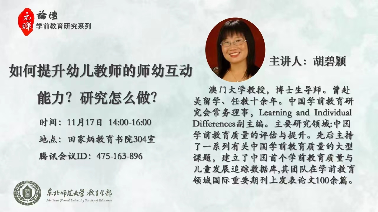 【元晖论坛——学前教育研究系列】胡碧颖:如何提升幼儿教师的师幼互动能力?研究怎么做?