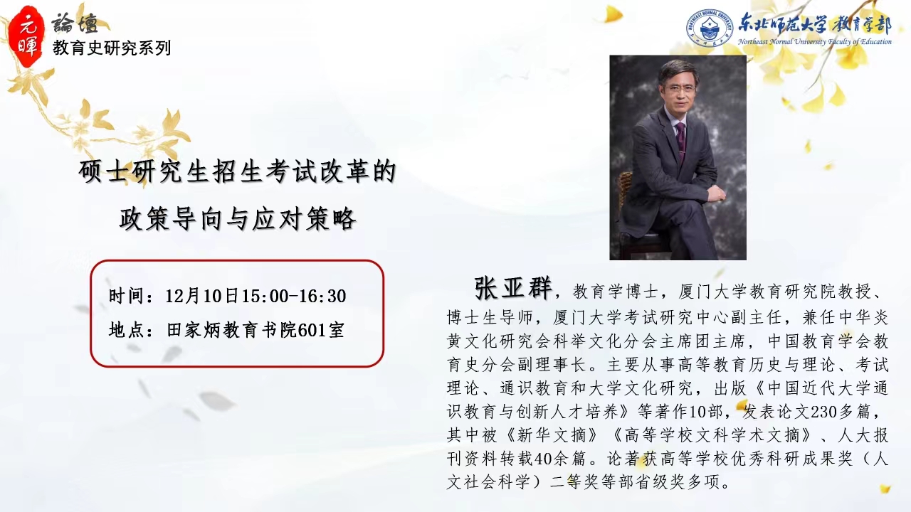 【元晖论坛——教育史研究系列】张亚群:硕士研究生招生考试改革的政策导向与应对策略