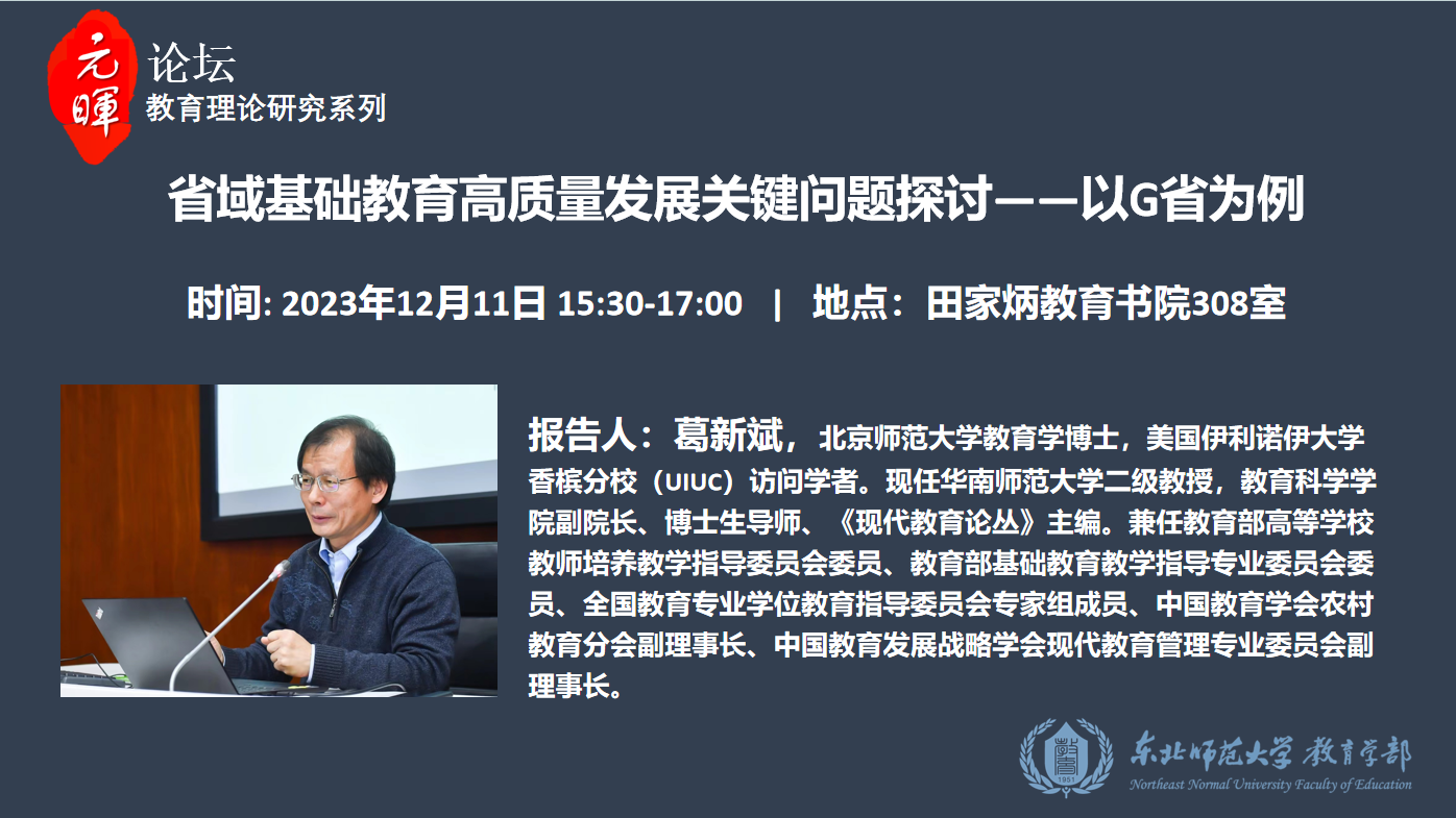 【元晖论坛——教育理论研究系列】葛新斌:省域基础教育高质量发展关键问题探讨——以G省为例