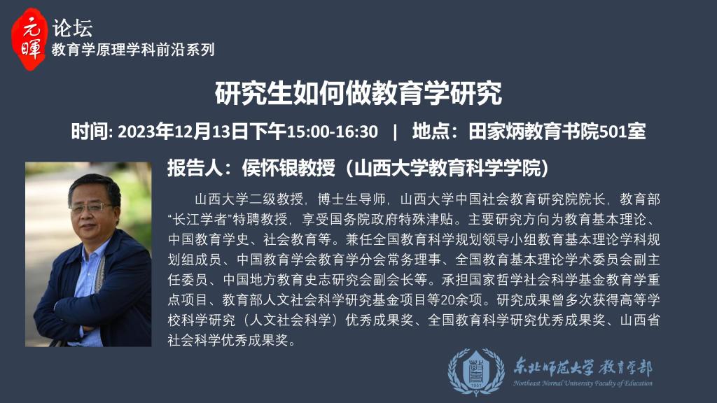 【元晖论坛——教育学原理学科前沿系列】侯怀银:研究生如何做教育学研究