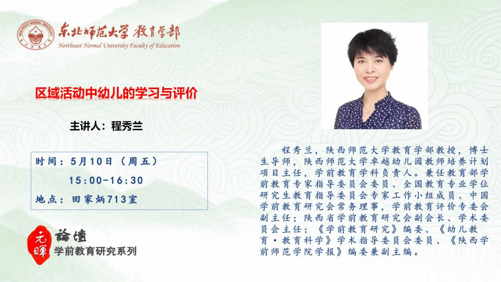 【元晖论坛——学前教育研究系列】程秀兰:区域活动中幼儿的学习与评价