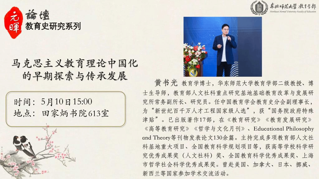 【元晖论坛——教育史研究系列】黄书光:马克思主义教育理论中国化的早期探索与传承发展