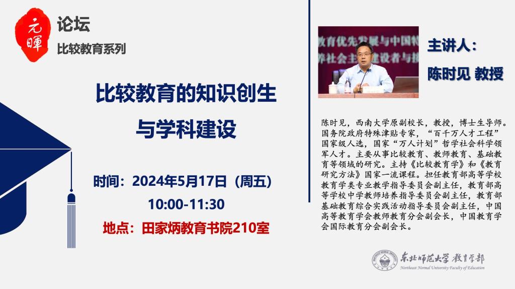 【元晖论坛——比较教育系列】陈时见:比较教育的知识创生与学科建设