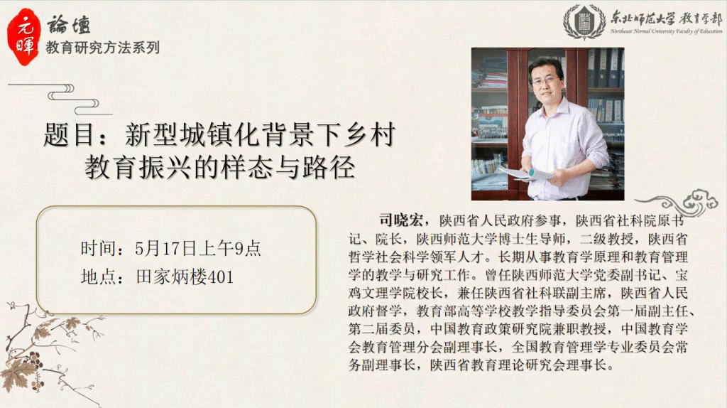 【元晖论坛——教育研究方法系列】司晓宏:新型城镇化背景下乡村教育振兴的样态与路径