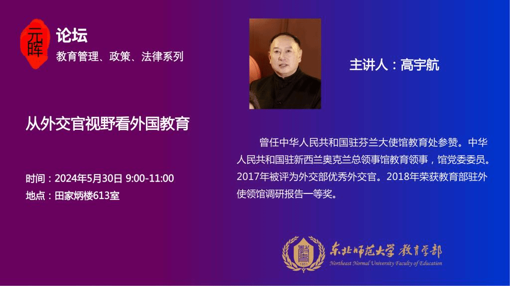 【元晖论坛——教育管理、政策、法律系列】高宇航:从外交官视野看外国教育