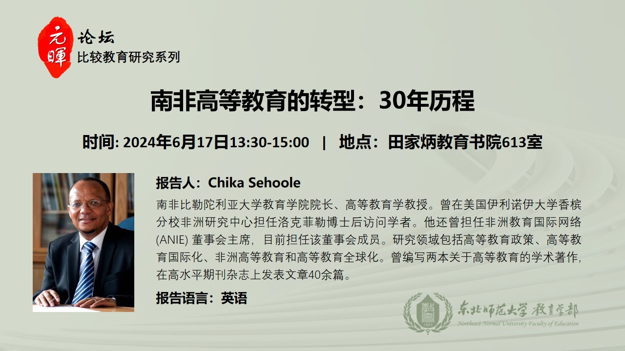 【元晖论坛——比较教育研究系列】Chika Sehoole:南非高等教育的转型