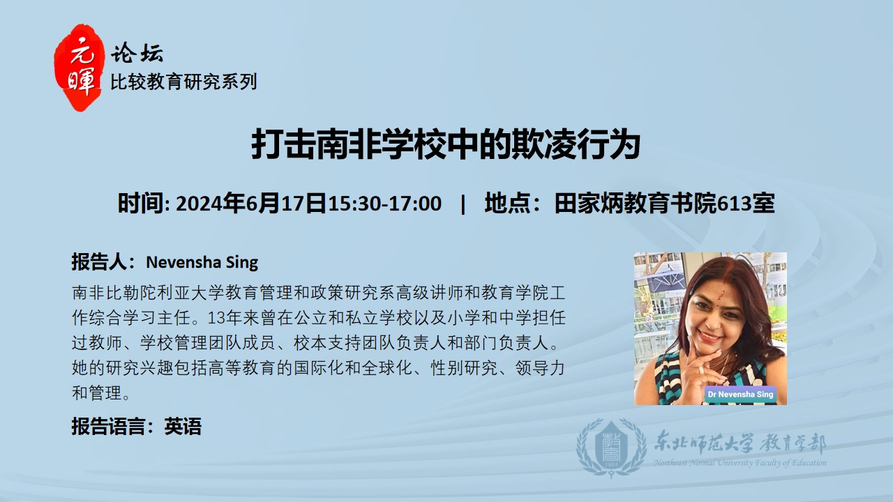 【元晖论坛——比较教育研究系列】Nevensha Sing:打击南非学校中的欺凌行为