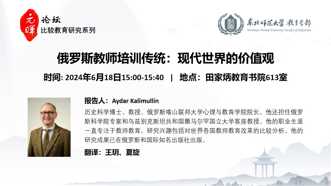 【元晖论坛——比较教育研究系列】Aydar Kalimullin:俄罗斯教师培训系统——现代世界的价值观