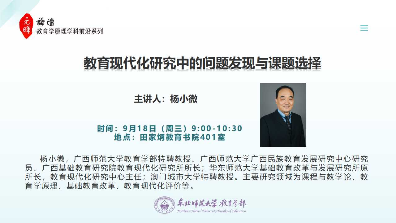 【元晖论坛——教育学原理学科前沿系列】杨小微:教育现代化研究中的问题发现与课题选择