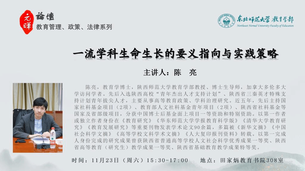 【元晖论坛——教育管理、政策、法律系列】陈亮:一流学科生命生长的要义指向与实践策略