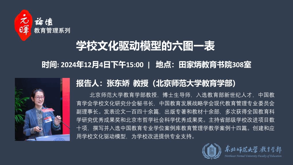 【元晖论坛——教育管理系列】张东娇:学校文化驱动模型的六图一表