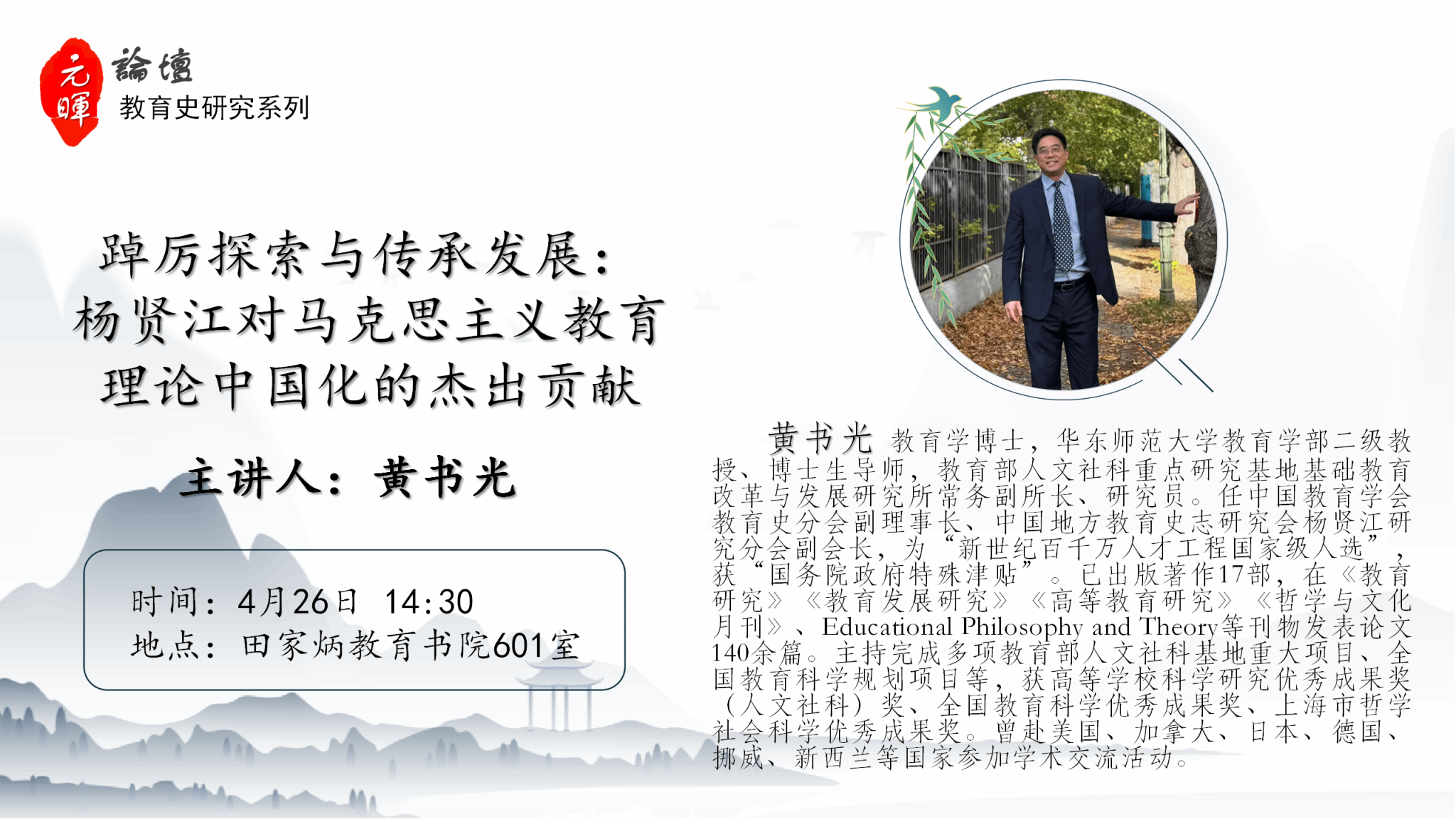【元晖论坛——教育史研究系列】黄书光:踔厉探索与传承发展: 杨贤江对马克思主义教育理论中国化的杰出贡献