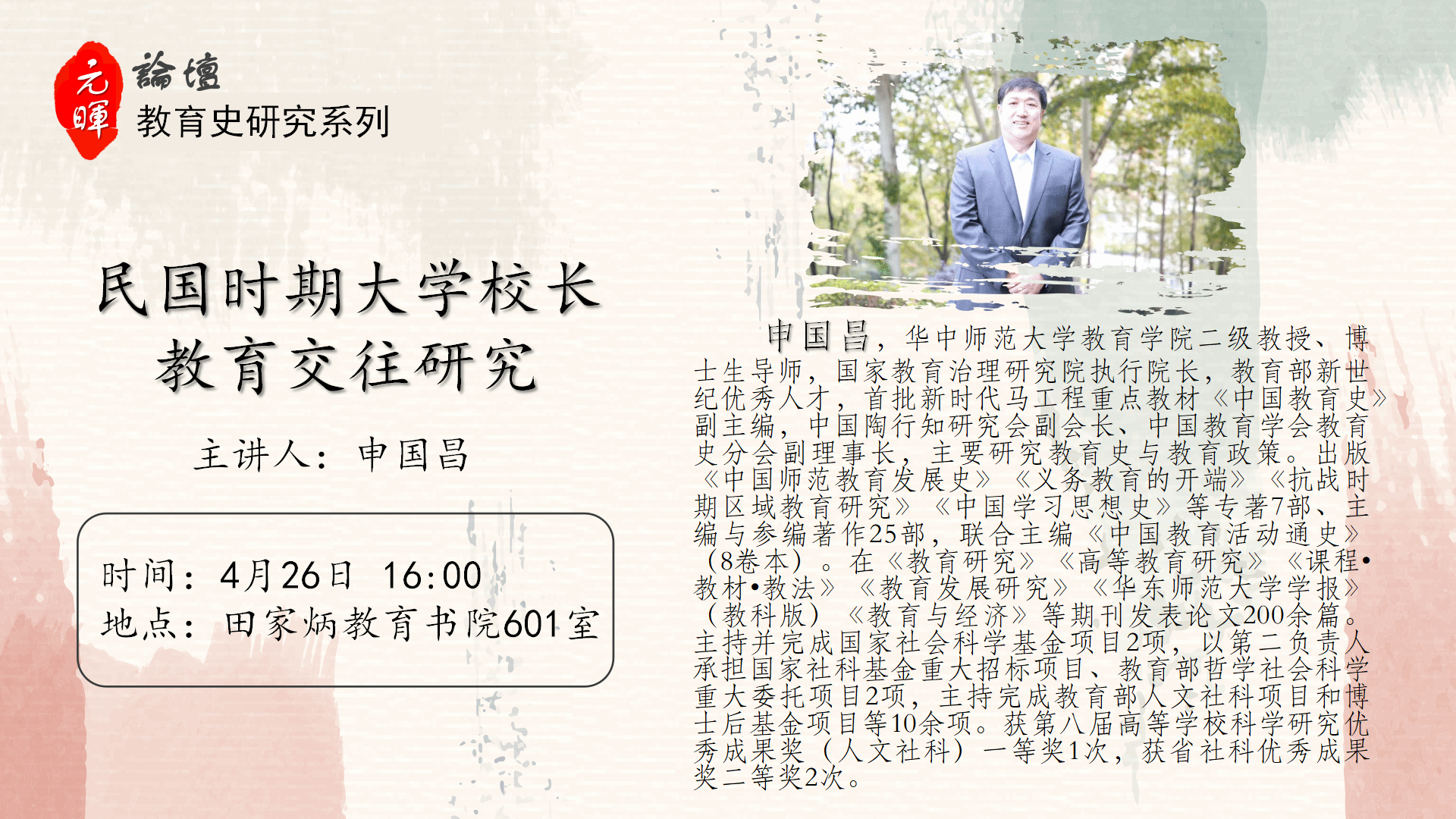 【元晖论坛——教育史研究系列】申国昌:民国时期大学校长交往研究