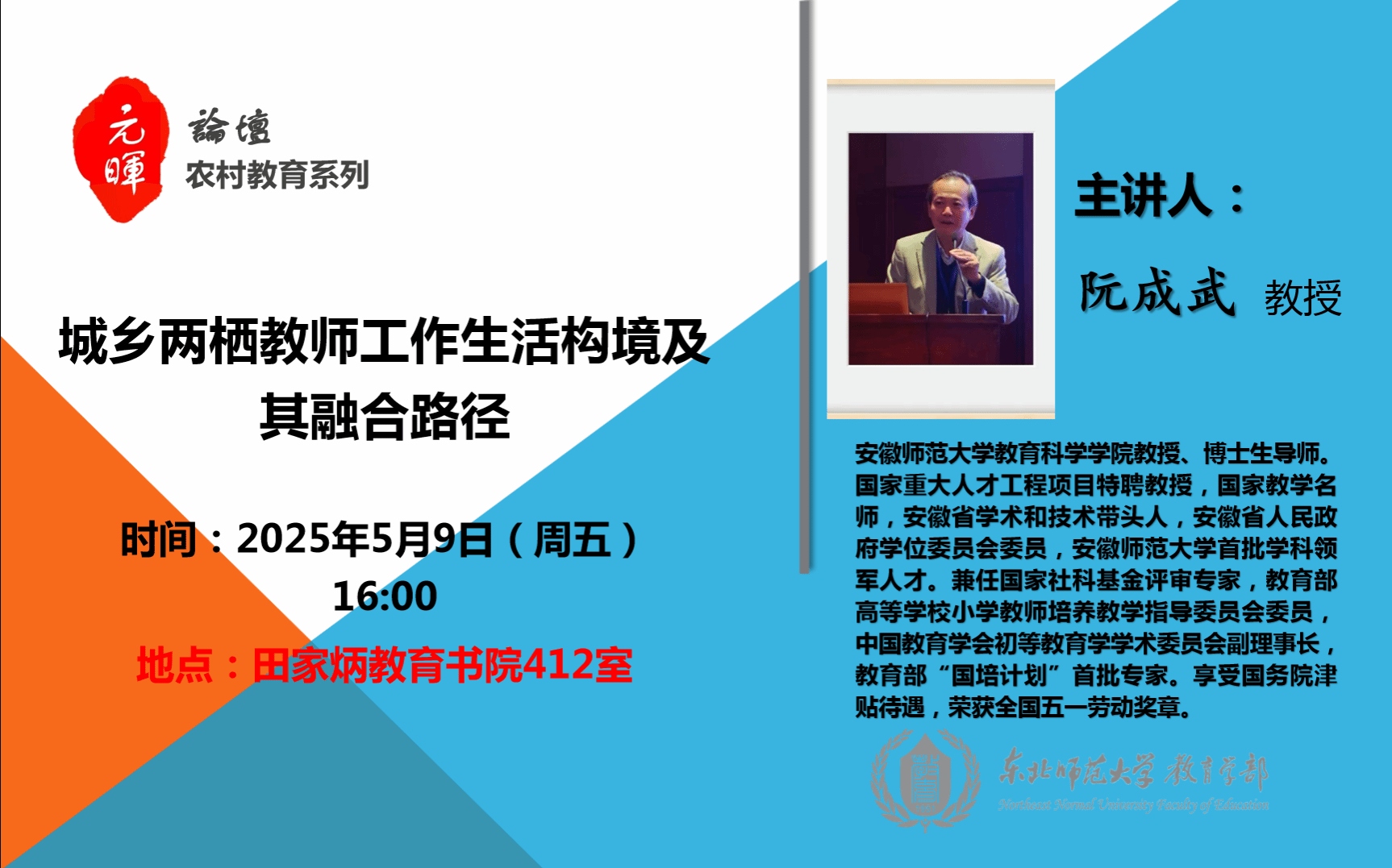 【元晖论坛——农村教育系列】阮成武:城乡两栖教师工作生活构境及其融合路径