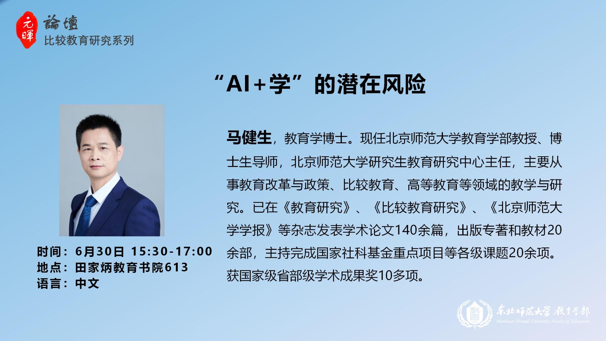 【元晖论坛——比较教育研究系列】马健生:“AI+学”的潜在风险