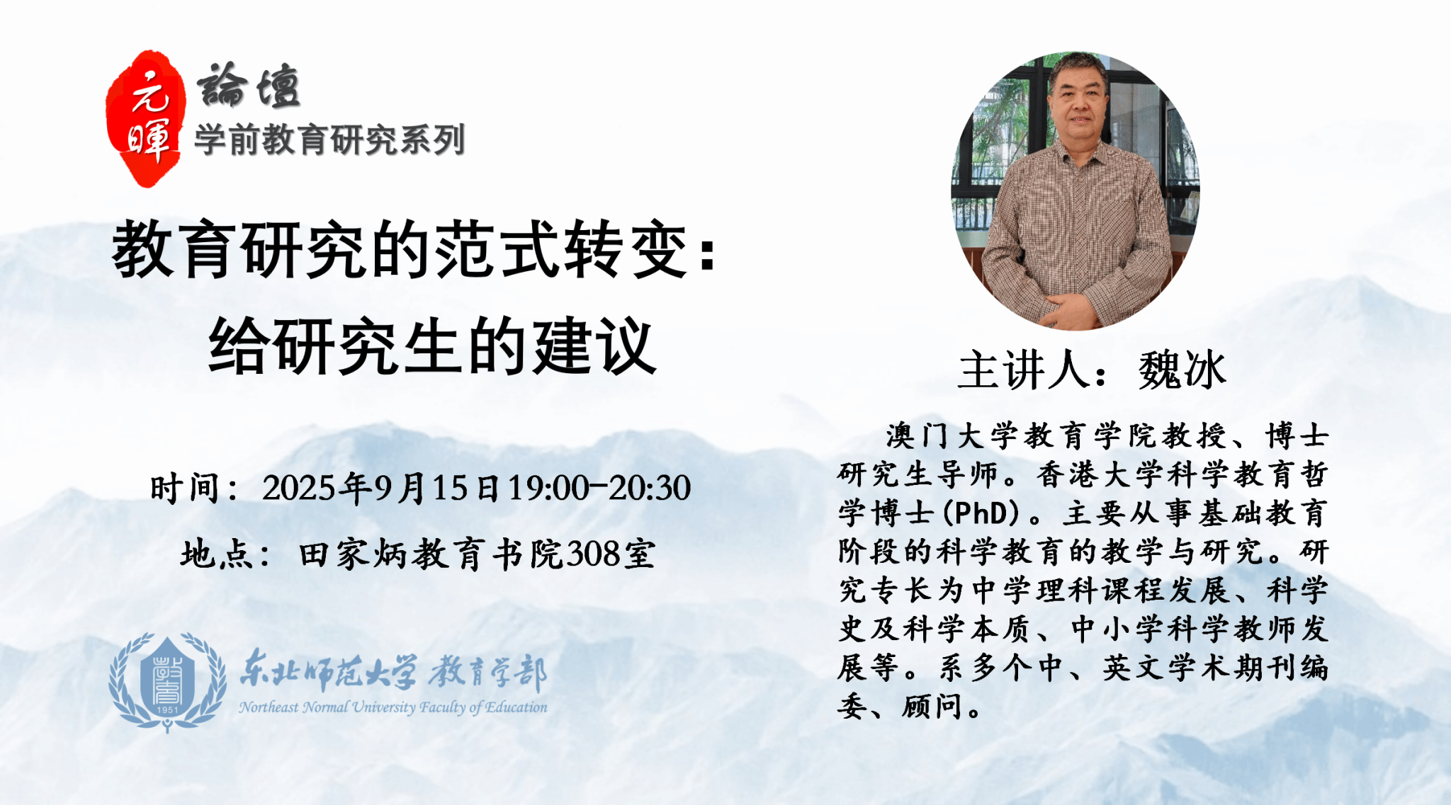 【元晖论坛——学前教育研究系列】魏冰:教育研究的范式转变——给研究生的建议