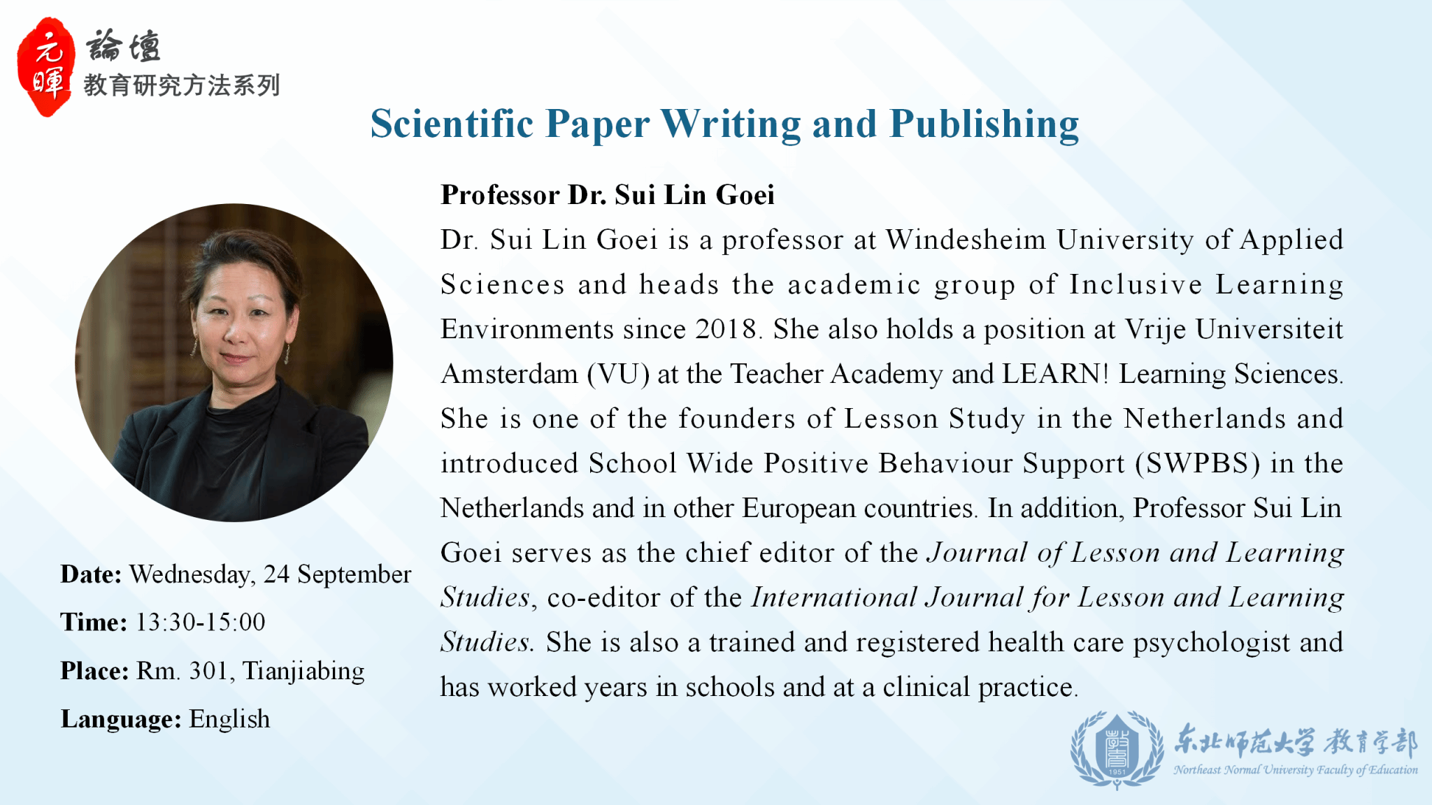 【元晖论坛——教育研究方法系列】Sui Lin Goei:Scientific Paper Writing and Publishing