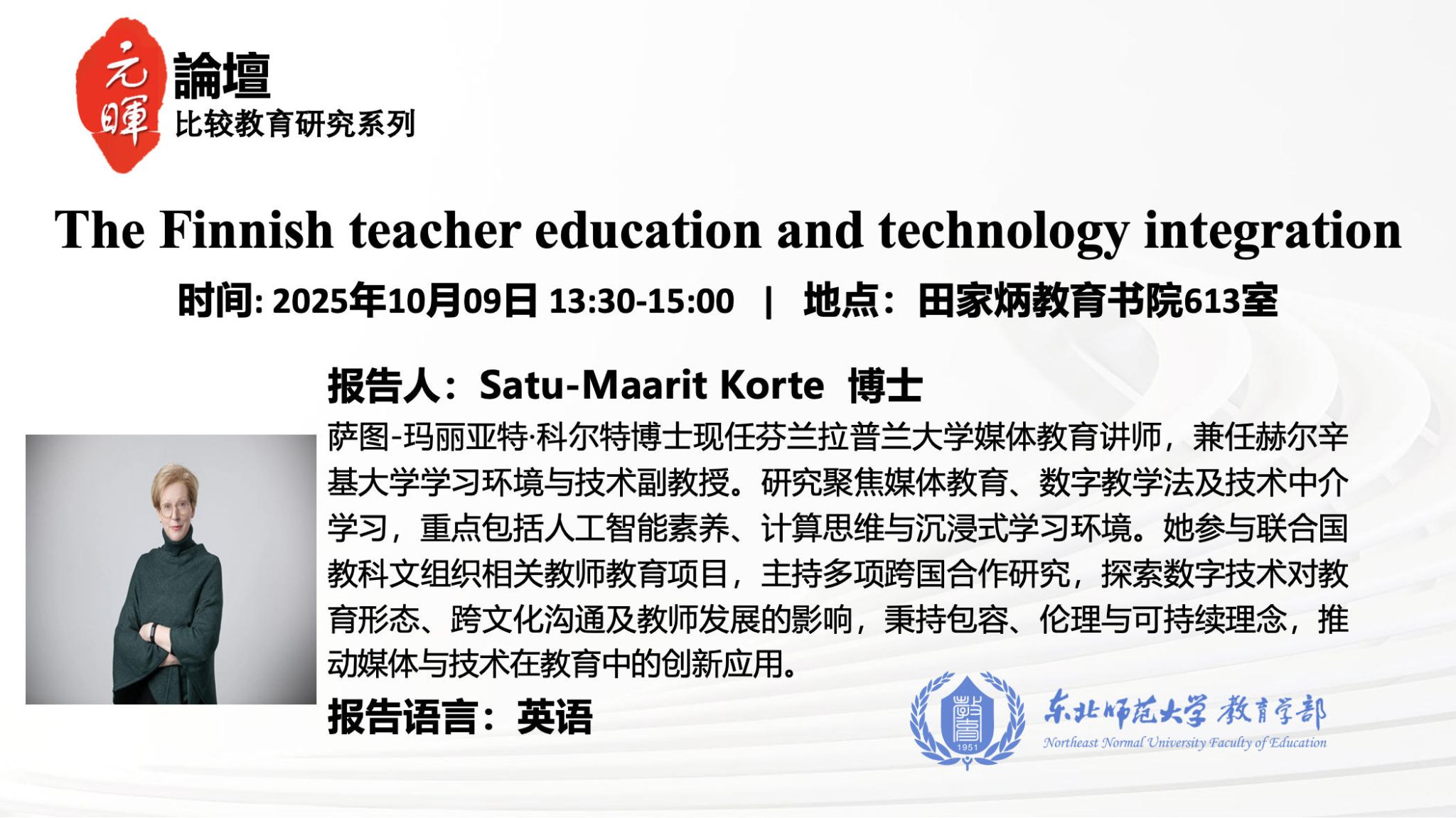 【元晖论坛—比较教育研究系列】Satu-Maarit Korte :The Finnish teacher education and technology integration