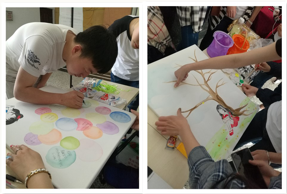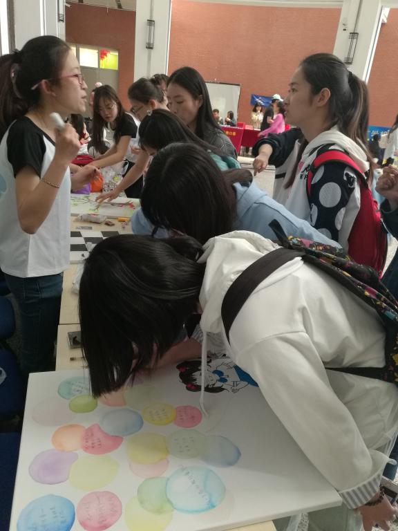活动开始,首先由主持人畅想童年的美好,勾起大家对童年美好回忆的向往,由此拉开活动的序幕。36位小仙女们的幼儿舞蹈《小宝贝》更是将此次活动推入高潮,吸引了众多观众的围观。通过让现场观众亲身参与到为幼儿园小朋友写节日祝福寄语、自由创作拼贴画与指纹画等活动之中,更加深化了他们对学前教育的认知与理解。