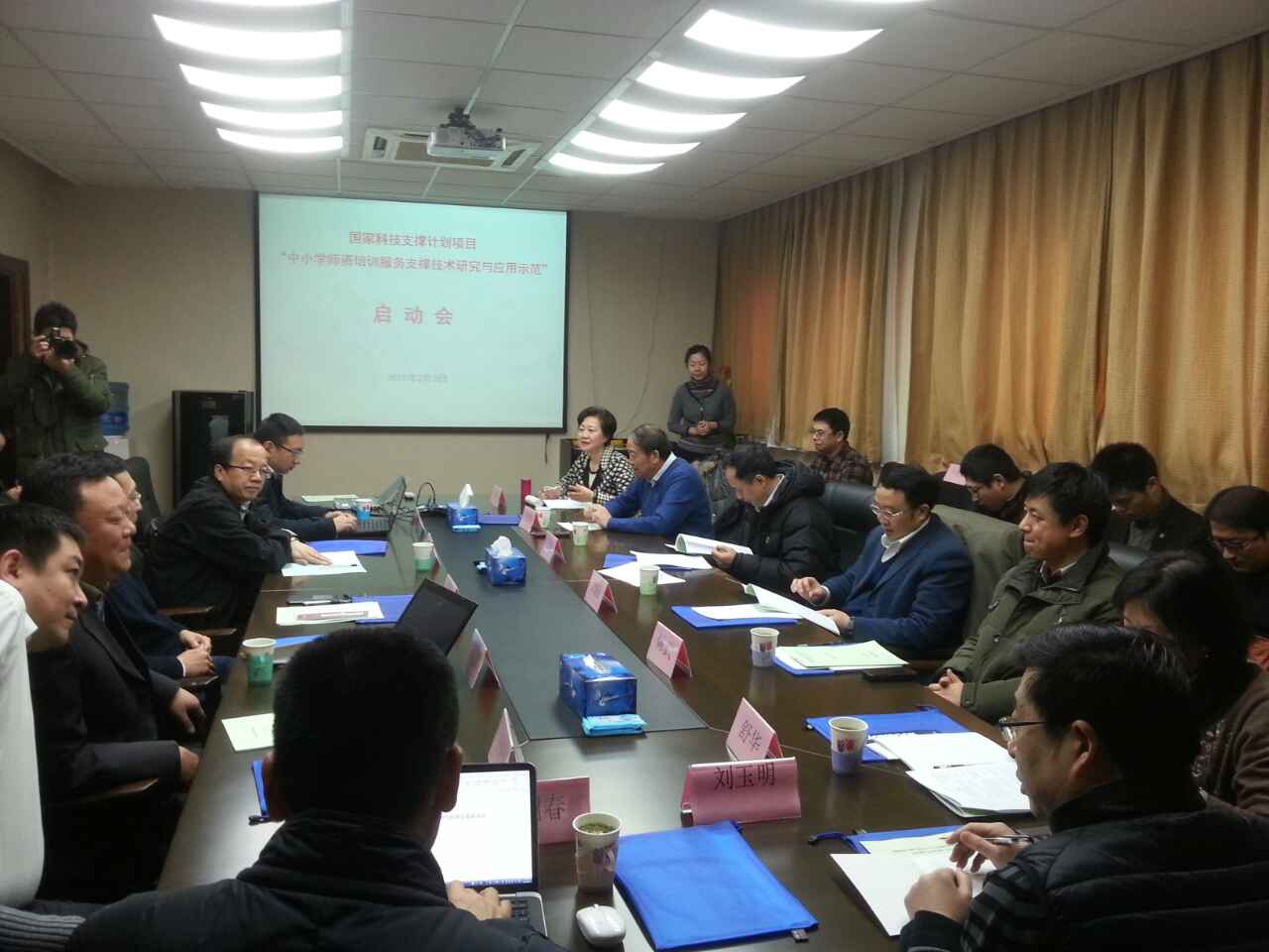 2月3日,国家科技支撑计划项目“中小学师资培训服务支撑技术研究与应用示范”启动会在北京召开。该项目是由教育部科学技术司组织,我校牵头,联合北京师范大学、华中师范大学、电大在线远程教育技术有限公司、北京继教网教育科技发展有限公司和我校理想软件股份有限公司5家单位共同申报并获批的,旨在借助现代信息技术建立中小学师资培训工作的支撑服务平台,通过平台服务规范、运行模式研究、课程生成与管理技术研究、示范性课程建设及应用示范与学分互换研究等,推进教师队伍尤其是农村偏远地区教师的资源共享和专业发展,进而促进教育公平。这是我校首次作为牵头单位获批的国家科技支撑计划项目,项目总经费4587万元,其中国拨专项经费1587万元。