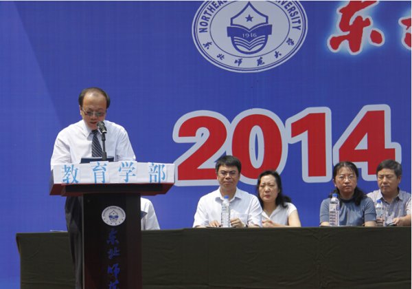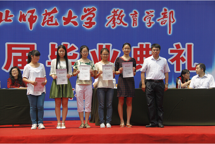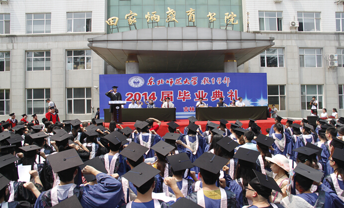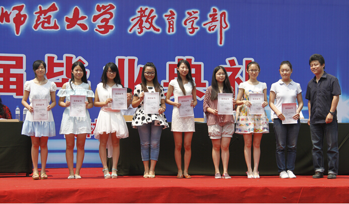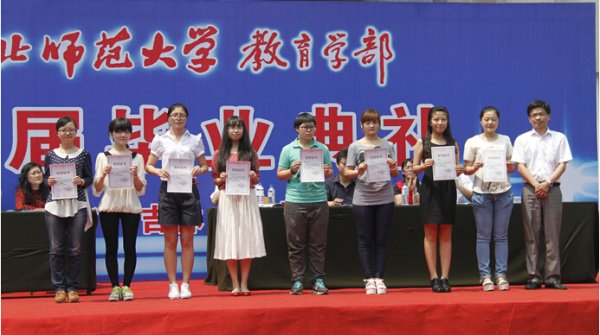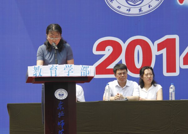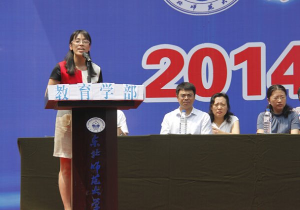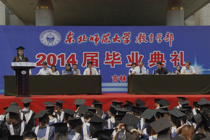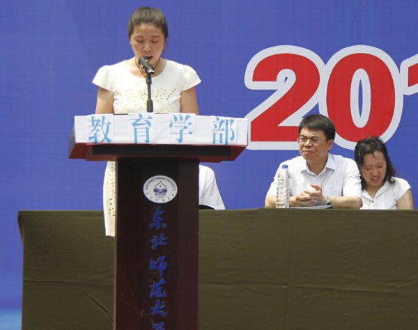 2014届本科毕业生代表、学前教育专业李瑞琪同学代表全体毕业学生抒发了即将离校的感慨:“亲爱的母校,亲爱的学部,你们包容过我们的稚嫩,见证着我们的发展,更将目睹我们的成功。请你们相信,我们在今日踏出校园,定会永远以‘勤奋创新,为人师表’的校训作为前行的信条,拾光写意,育帛书辉,行胜于言,我们一定会成为合格的教师,为母校增光添彩!”
