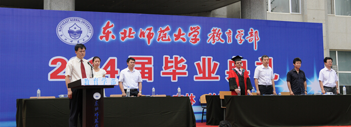 随后,学部毕业生用饱满的热情,激昂的声音庄严地进行毕业宣誓:“以我之热情,使学生更幸福!以我之努力,使学校更美丽!以我之责任,使国家更强盛!我将恪守誓言,铭记东师精神,铸造学部师魂!”