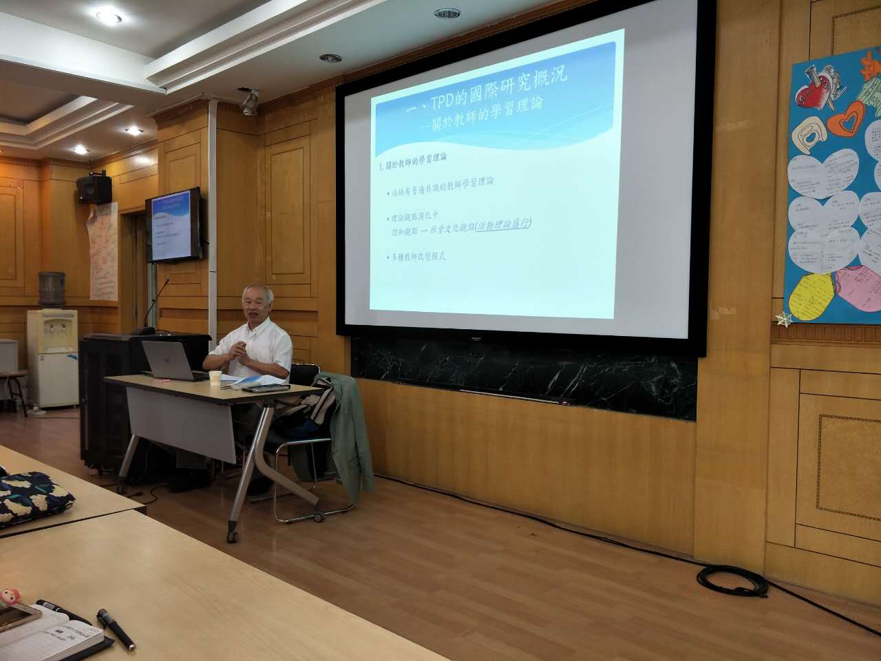 报告中,林福来教授首先介绍了国际上关于教师学习的活动理论和教师成长模式,然后与在座师生详细分享了台湾数学教师以及数学教育者的研究和实践,主要包括数学亮点基地计划,设计为本的教师专业成长方案、设计“臆测”任务的教师专业发展工作坊、数学奠基活动研发研究,以及师培师(教师教育者)的师培力研究等。