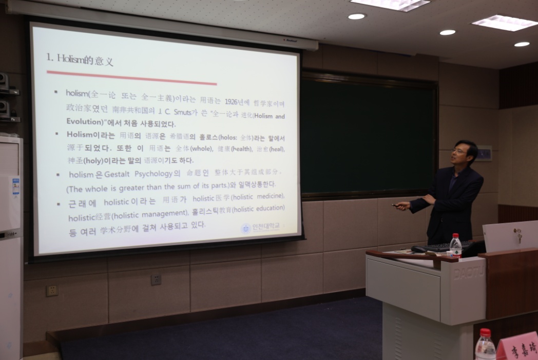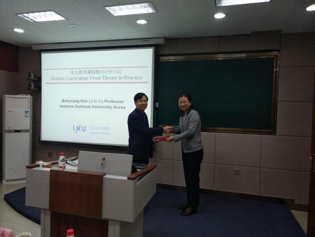 9月25日,韩国仁川大学教育学院金福永教授应邀作客学部课程发展研究系列“元晖论坛”,为我校师生作了题为“全人教育课程的理论和实践”的专题学术报告。