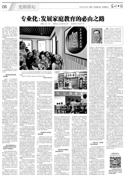 10月28日,《光明日报》“光明讲坛”栏目整版刊登了学部家庭教育研究院负责人赵刚的学术报告《专业化:发展家庭教育的必由之路》。