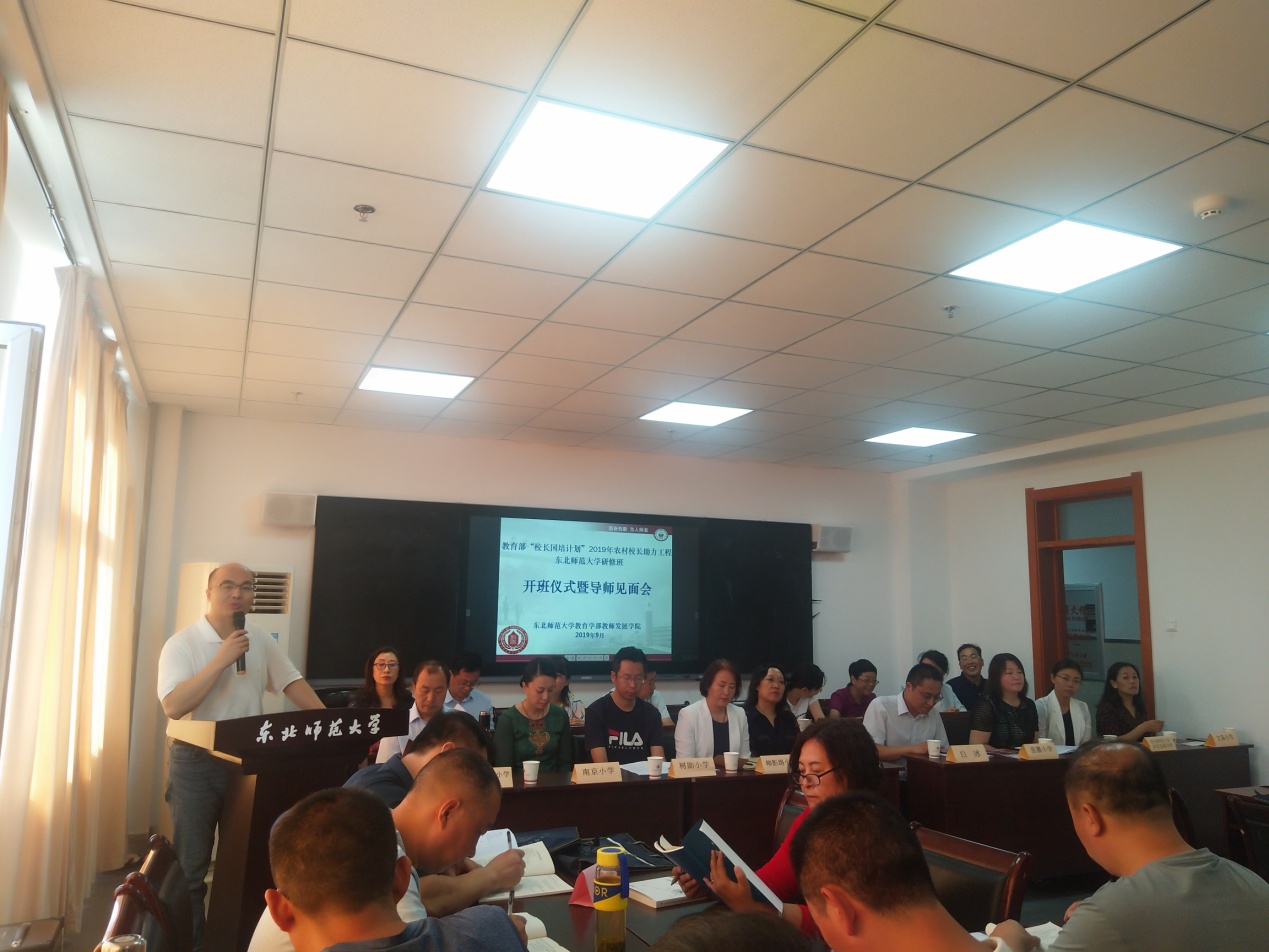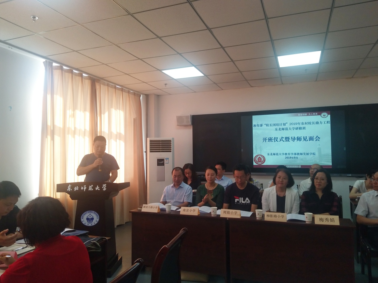 9月4日,学部承办的教育部“校长国培计划”2019年边远贫困地区农村校长助力工程研修班开班典礼暨导师见面会在田家炳教育书院举行。来自全国19个省区的50位农村学校校长、学部的8名理论导师和聘请的8名长春市优秀中小学校长实践导师共同参加了开班典礼。