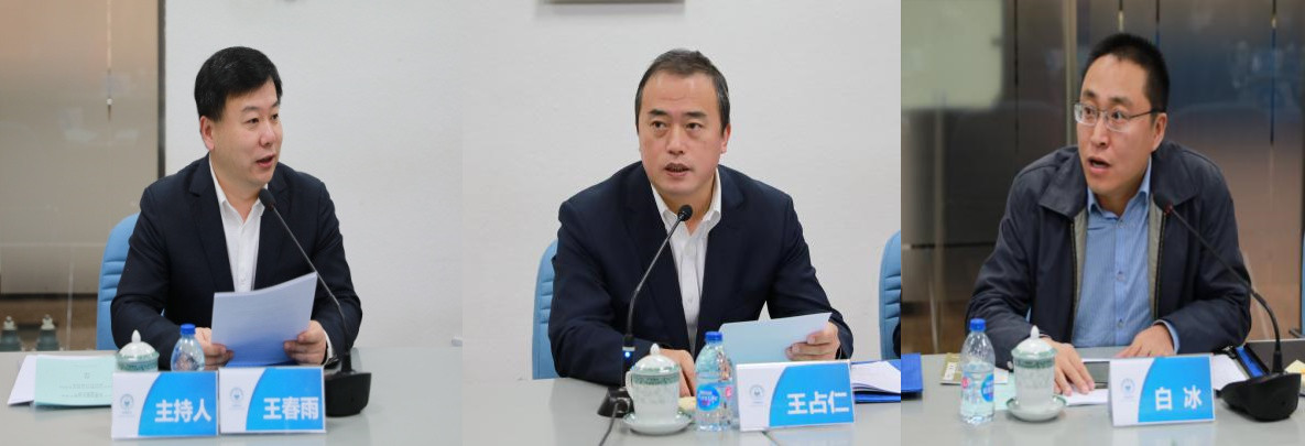 王春雨处长主持会议,王占仁副校长、白冰副书记分别致辞